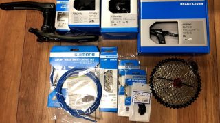 ついにクランク以外の部品が揃いました。DEOREが多いですゆうてスプロケットがまだこないんですけどね。。。いつも目に入ると、あーぼろいなーって思ってた、この黄ばんで変色して中の見えづらい7速シフターとついにサヨナラする時が来ました!元のが一...